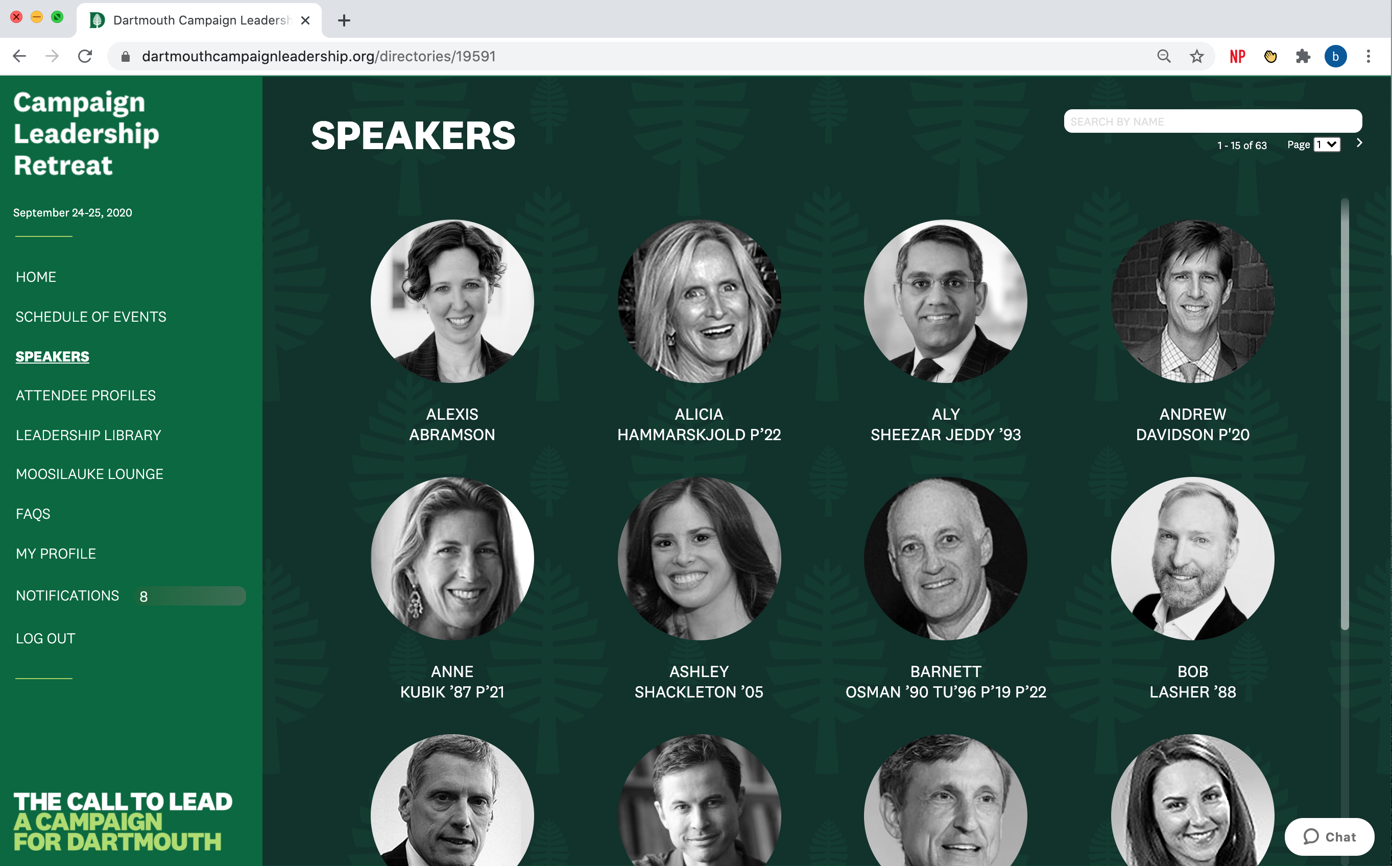 Leveraging the unique capabilities of virtual event technologies to provide new and powerful opportunities for connecting, interacting, building community, and celebrating, Empire created a fully-custom, visually-rich virtual event center, modeled on Dartmouth Hall, that incorporated a variety of virtual tools including a robust speaker directory, customized attendee profile pages, and a “Leadership Library” filled with resources that allowed Dartmouth College to plan, promote, and execute the Leadership Retreat as a launch pad for future virtual events.