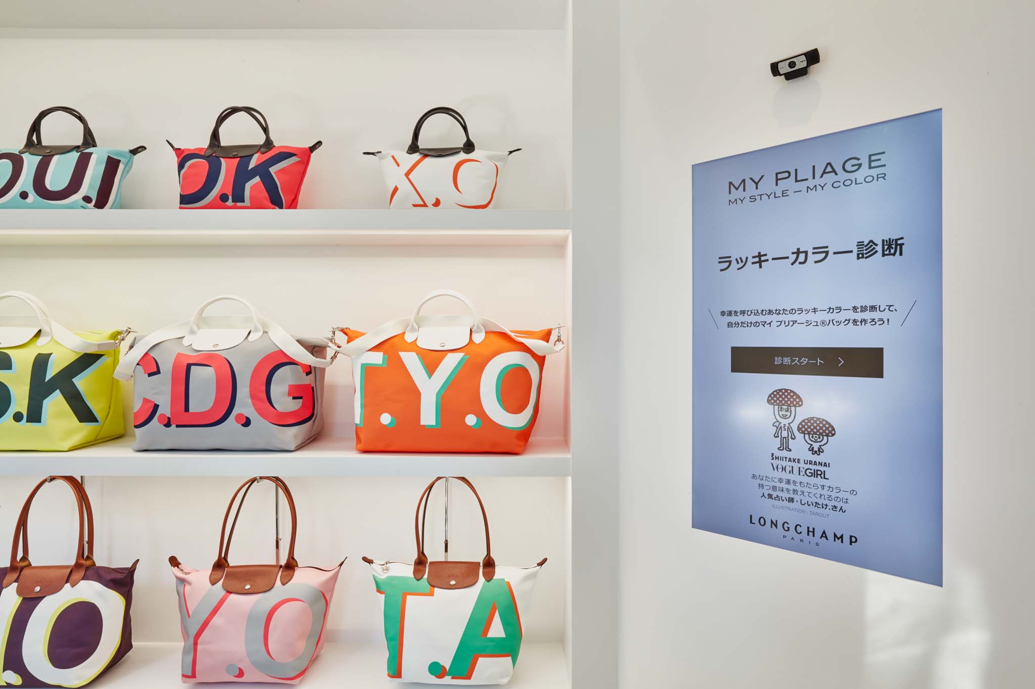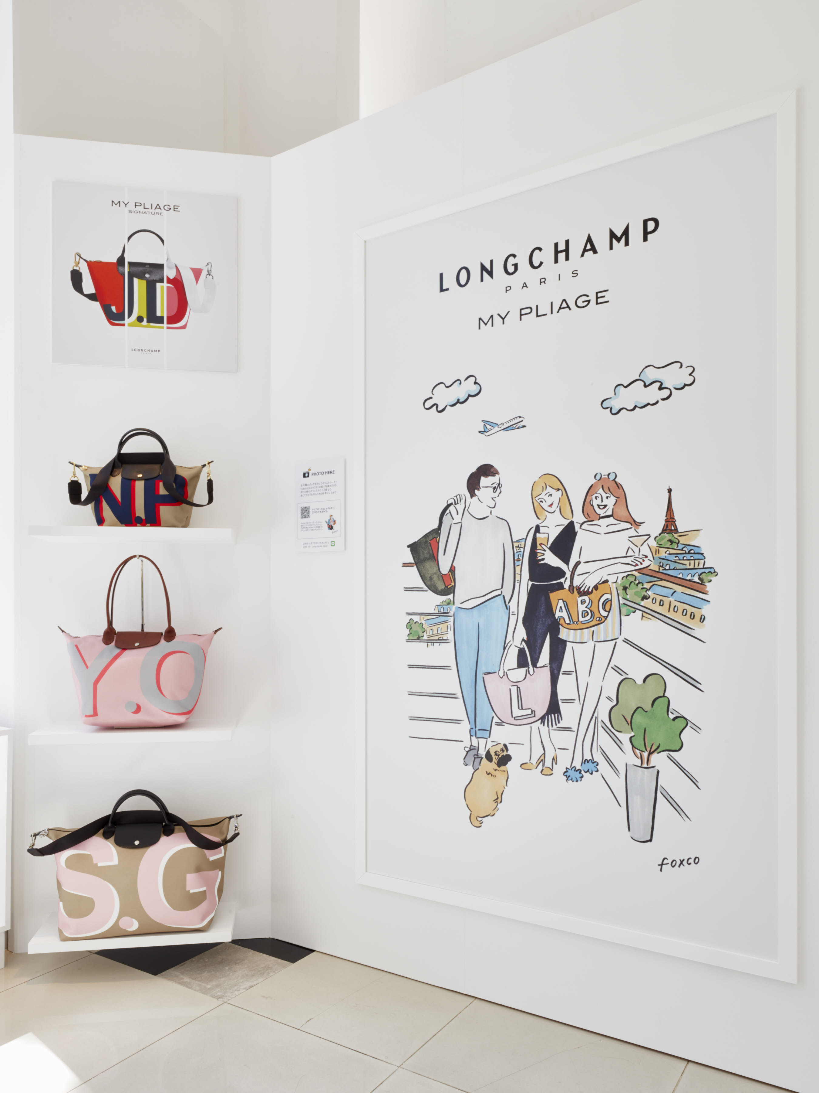 The MY PLIAGE® SIGNATURE, a new line of eco-friendly canvas bags, is a line dedicated to the customization of the iconic LE PLIAGE® bag. With the MY PLIAGE® SIGNATURE, Longchamp lets you design striking custom bags. From the letters and numbers that you want to appear on the bag, guests have a total of 7.2 million color patterns to choose from. If they had trouble in choosing their colors, they were taken to the “Lucky Color Horoscope Corner”. Published in VOGUE GIRL, in collaboration with "Shiitake Unari Fortune Telling”, using keywords and facial recognition technology, this device helped guests choose their color patterns. Also included was popular Japanese illustrator and artist foxco's original artwork on display.