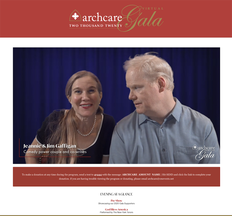 The entirely original virtual program featured His Eminence, Timothy Michael Cardinal Dolan, Archbishop of New York; Scott LaRue, President and CEO of ArchCare; tributes from comedian Jim Gaffigan and his wife, Jeannie; Tino Martinez; Mike Piazza; Nicole Henry; and more.
