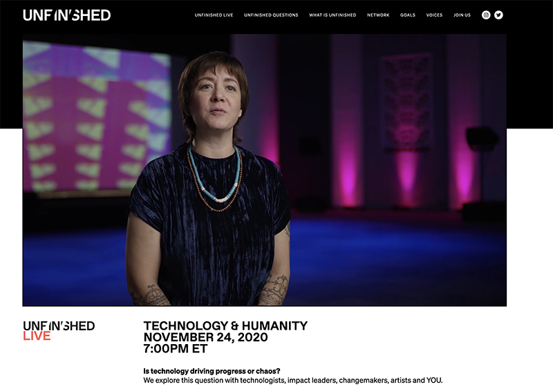 Unfinished is an impact network and media platform devoted to the simple idea that if we open our minds and create the space for possibilities, we can advance powerful solutions to the most critical challenges of our time. By tapping into the power of communities, creative media, and new technology, we connect thought leaders, culture-shapers, policy-makers, and innovators to provoke ideas, elevate unheard voices, and pursue collaborations for greater impact.