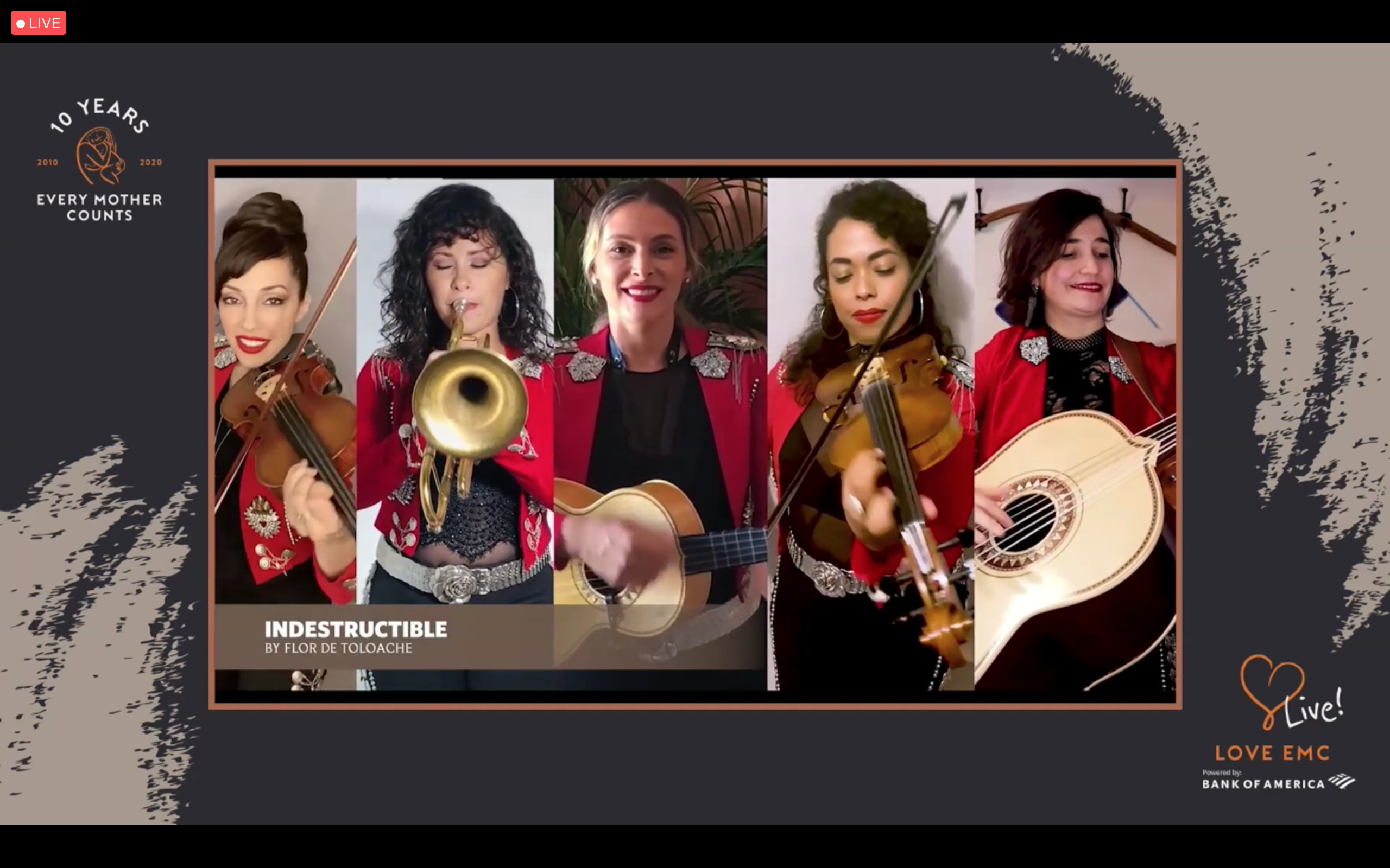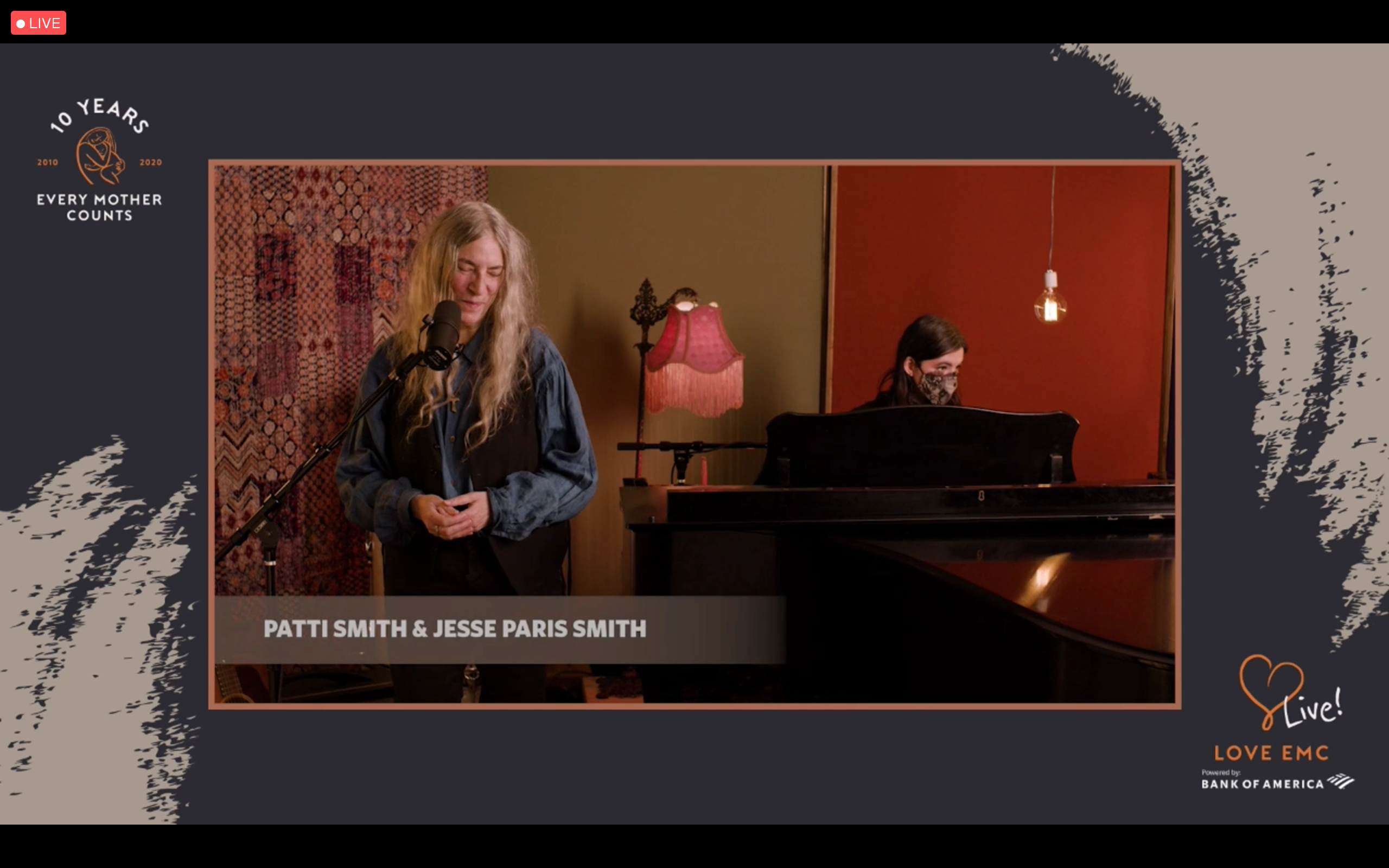 Celebrating EMC’s 10-year anniversary, this virtual event was hosted by New York City’s stand-up comedian, Erin Jackson, with moving remarks by EMC’s CEO and Founder, Christy Turlington Burns. It featured special musical performances by Feist, who sang an acoustic version of “Human Touch,” the iconic Patti Smith and her daughter Jesse Paris Smith, who sang “Wing,” and all-female supergroup Latin Grammy-winners, Flor de Toloache, with their hits, “Indestructible” and “Our Love.”