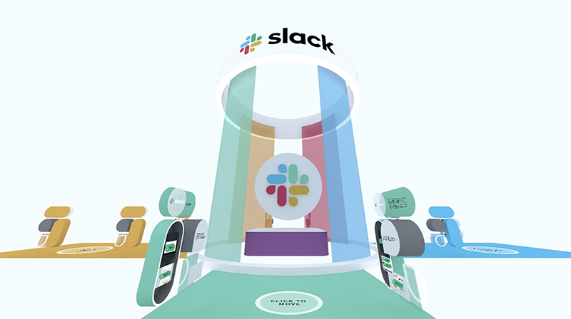 The highlight of the online event was the sponsor information hub, where participants experienced the collaboration between Slack and partner companies' services and solutions in a 3D space.