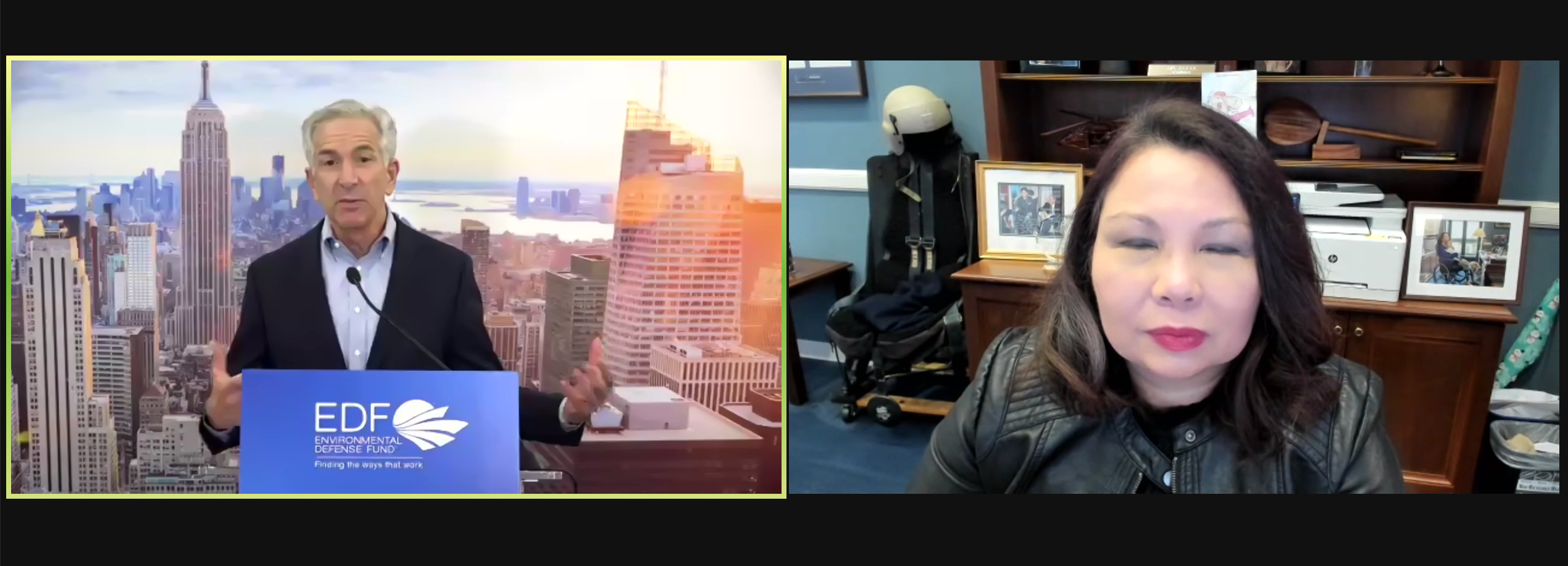 The Zoom Webinar, which featured live and pre-recorded remarks, panel discussions, and original video content, was viewed by over 600 EDFers internationally. Program highlights included remarks by EDF’s President, Fred Krupp, Executive Director, Amanda Leland, and current sitting US Senator, Tammy Duckworth. Speakers joined the program both remotely from their homes as well as in-person at EDF’s New York City and Washington DC offices, where small, live audiences also participated in the event.