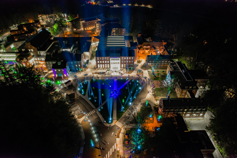 The Gala dinner was hosted by Laurel Richie, Former Chair of the Dartmouth Board of Trustees and co-chair of The Call to Lead campaign for Dartmouth, and included remarks by Dartmouth President, Philip J. Hanlon. Among the many high points of this evening were a presentation of the McGuire Prize for Social Impact to Prof. Jason McLellan, a researcher whose work at Dartmouth’s Geisel School of Medicine was instrumental in the development of the MRNA Covid-19 vaccine. The Gala dinner concluded with presentations by several students sharing their visions for how their academic work will change the world and concluded with the guests joining a student celebration and DJ party that featured a spectacular light show that illuminated the entire West End that was co-created by Dartmouth student DJs and a world-class lighting team.