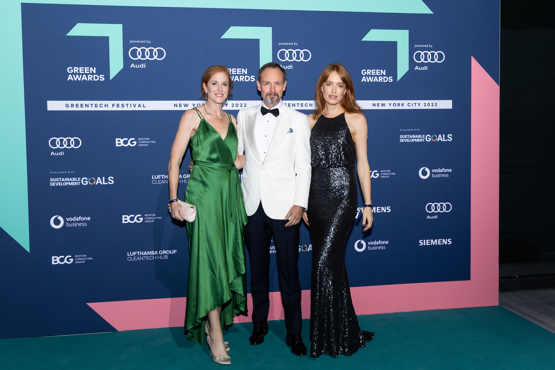 Night one featured a black tie-optional gala hosted by Louise Houghton with a seated program of awards, dynamic video screen content, a climate change awareness visit from Frankie the Dinosaur, speeches, musical performances, and a cocktail party for over 300 guests featuring DJ Kim Kong. Attendees fêted special prize-winner Carlo Ratti, Director of MIT’s Senseable City Lab, Mobility prize-winner ZeroAvia, and Community-winner, Clean Energy Leadership Institute. Additionally, there was an onstage appearance by Frankie the Dinosaur whose viral video (voiced by actor Jack Black) warns of extinction, and a riveting musical performance by Davie. Day two’s festival-style conference saw over 600 unique visitors for a series of keynote remarks, panels, fireside chats, and bootcamps both on site and at the United Nations, as well as a “Investors Gourmet” networking lunch designed to connect startups and venture capitalists. Speakers included Marco Voigt and Sven Kruger, Co-Founders of GREENTECH FESTIVAL, as well as Christopher Michelbacher of Audi, and Jenny Bofinger-Schuster of Siemens.