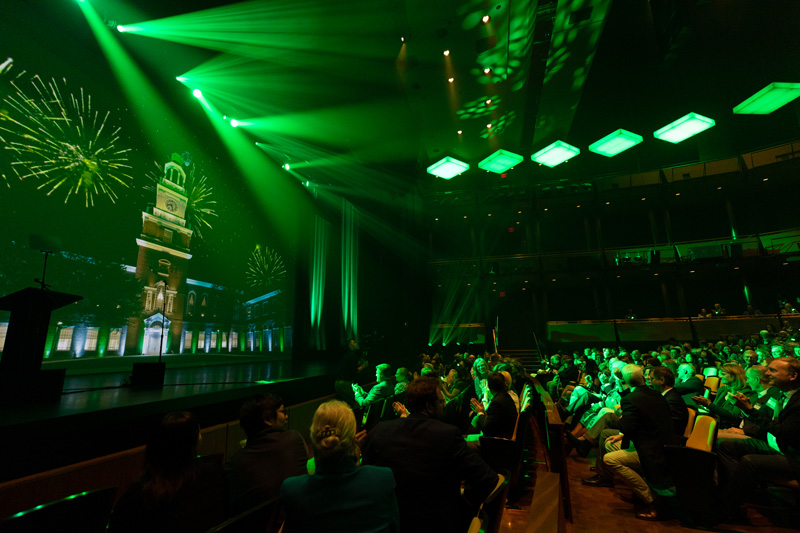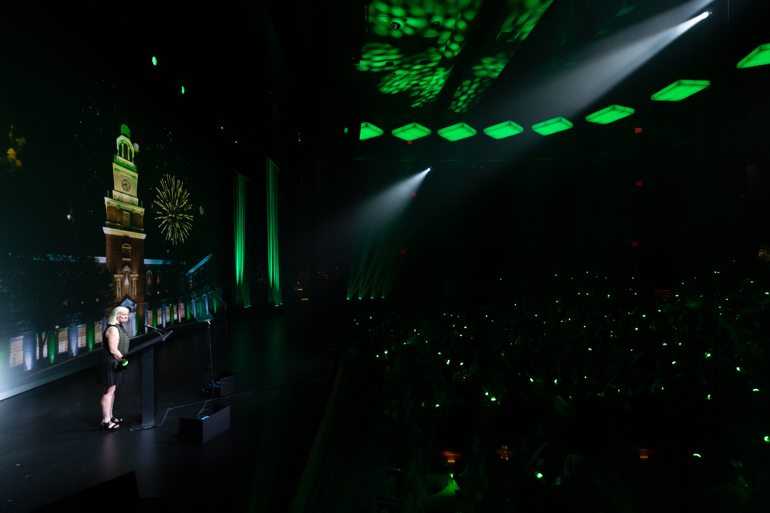The 45-minute stage program included monumental screen projections, a series of videos that told the story of A New Day at Dartmouth and summarized the achievements of The Call to Lead comprehensive campaign. The program paid tribute to Dartmouth’s outgoing President, Philip J. Hanlon, and re-energized the community about how Dartmouth’s future leaders will shape a better world.