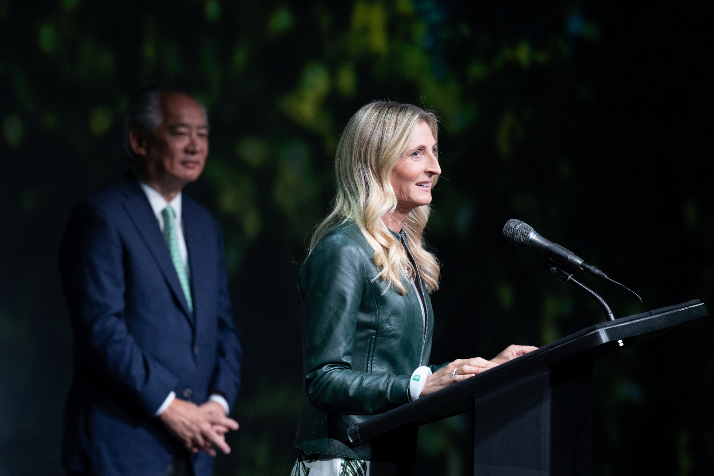 Guests received their first taste of technological innovation at registration, where they were welcomed by name on a reactive LED screen installation covering the full width of the entry wall. A large lunch café was created with a décor scheme that incorporated custom-built, ceiling-high steel LED frames draped with foliage to create smaller, intimate restaurant-style spaces that displayed both technology and nature.