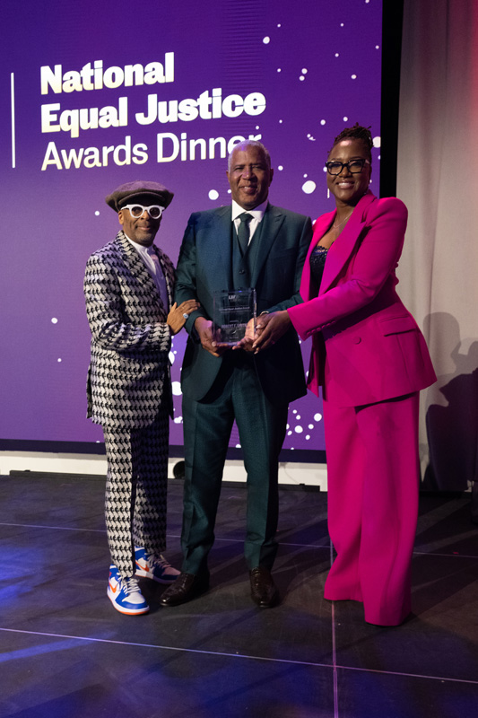 Subsequently, honorees were recognized, with attorney Fred Grey receiving the prestigious Thurgood Marshall Lifetime Achievement Award, followed by the acknowledgment of the National Equal Justice Award recipients: the Emerson Collective (presented by Geoffrey Canada), Nike, Jordan, and Converse brands (presented by Carmelo Anthony), as well as Vista Equity Partners' CEO, Robert F. Smith (presented by Spike Lee.)