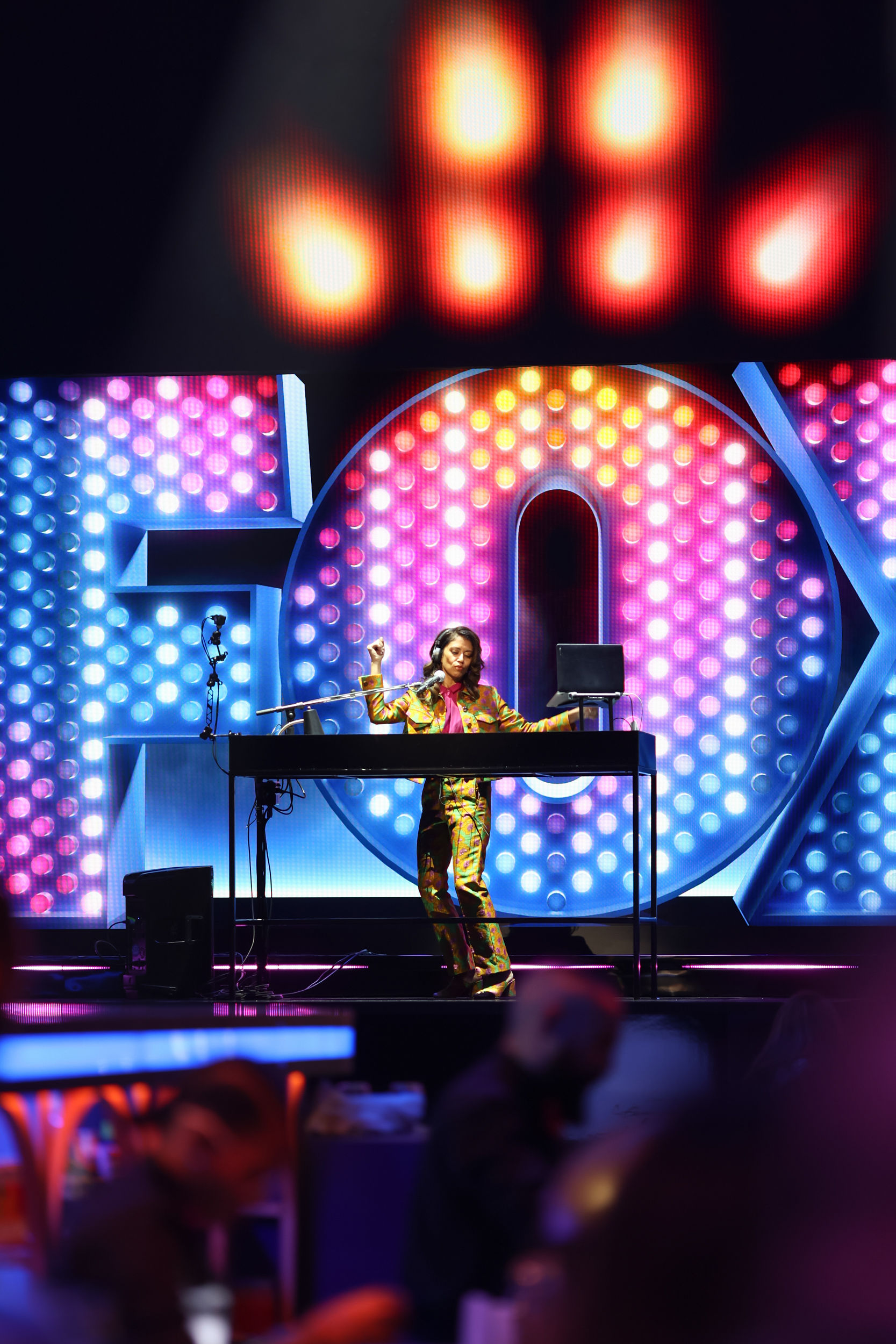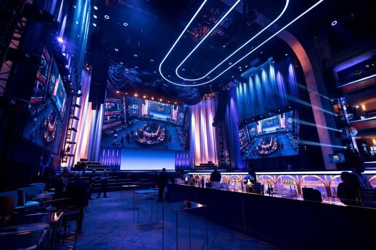 At the heart of the experience was a striking 360-degree full-service bar, dubbed the “pill stage” for its sleek, elongated oval shape, which served as the Upfront’s centerpiece. Complementing it was a massive 70-foot Apex Hero Stage, angled to spotlight speakers and hero content. The design fused Manhattan Center’s classic New York City charm with modern sophistication, creating a timeless yet contemporary atmosphere.