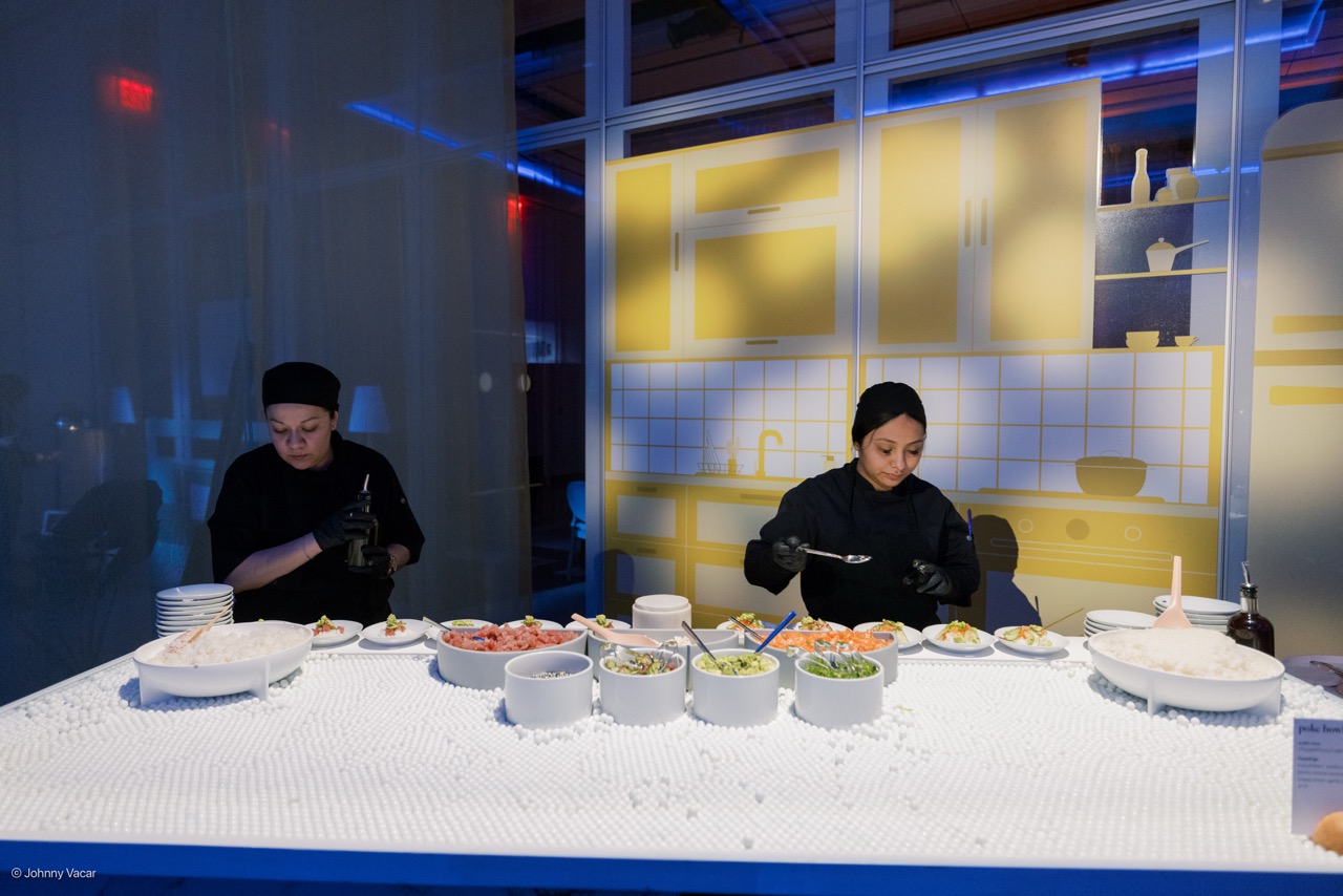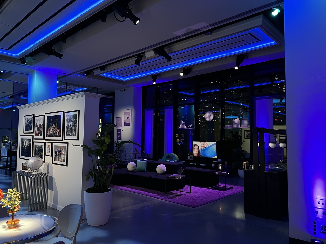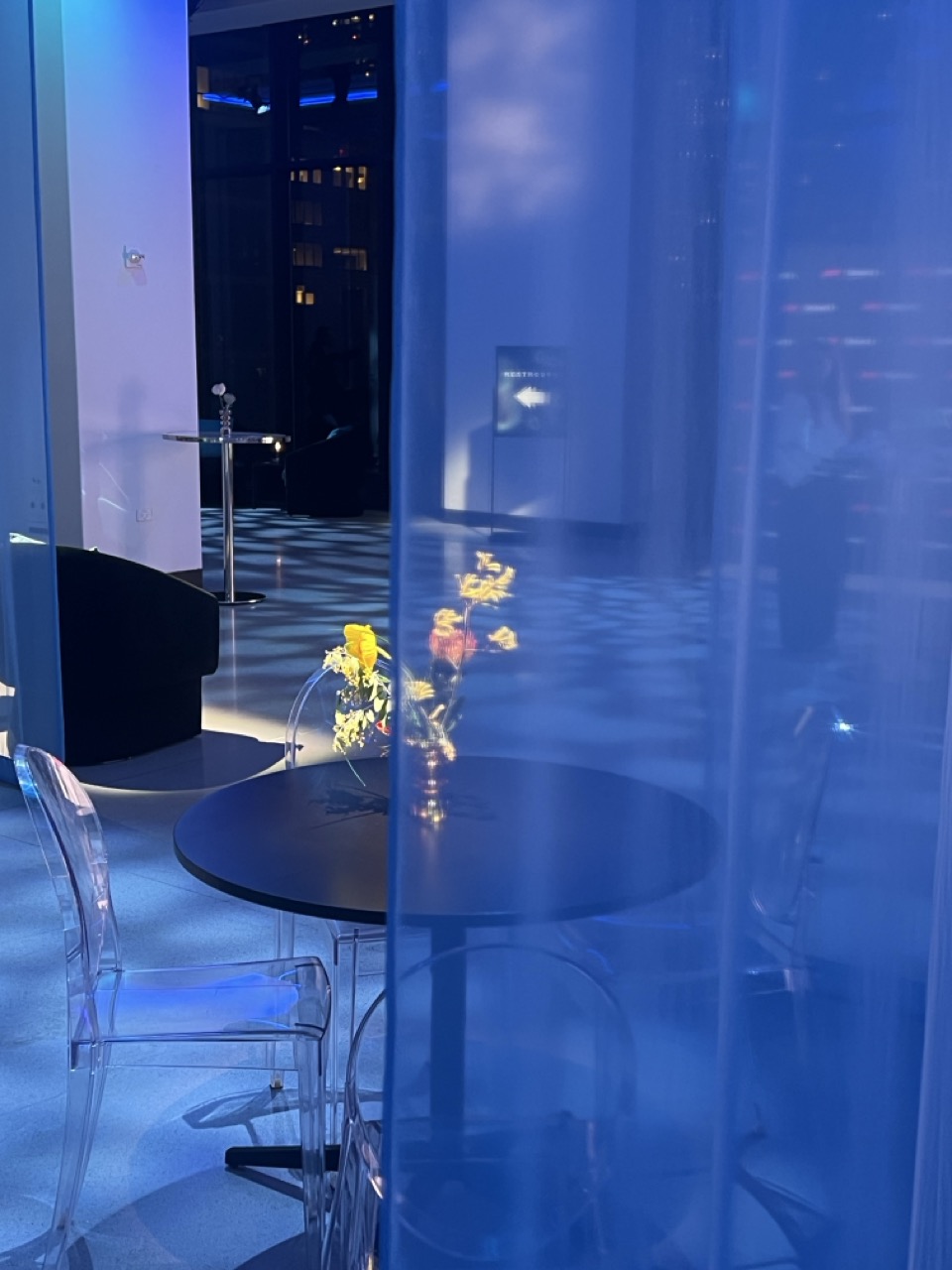 Following an inspiring seated presentation, guests were invited to GO HOME and explore the immersive Endeavor Home within the after-party space. Designed with a kitchen, bedroom, office, study, wine cellar, and even a backyard, the Home featured interactive activities that showcased the diverse achievements of Endeavor entrepreneurs. Towering fabric-paneled walls formed a modern, architectural space designed to foster networking—every detail meticulously crafted to enhance both experience and engagement while dynamically shaping the environment.