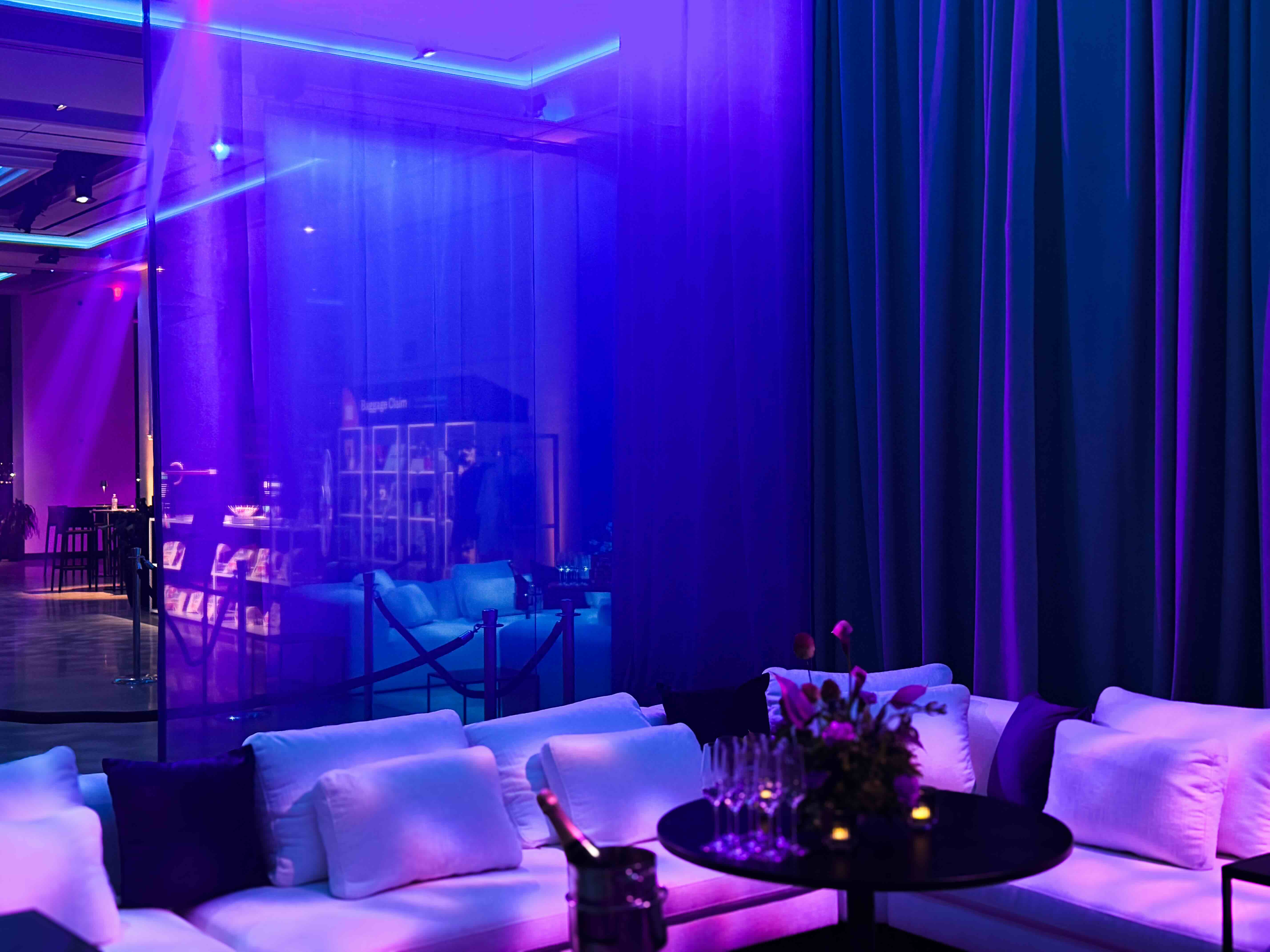 After a program centered on the power of Elsewhere, guests stepped into a travel-inspired reception that made Elsewhere feel real and ready to explore. Subtle airport cues were everywhere, escort cards as boarding passes, overhead wayfinding, and even a central arrivals board disguised as a bar. As flight attendants offered curated food experiences, guests explored discovery-led activations. Nestled in the terminal sat “The Elsewhere Newsstand”, a Hudson News-inspired photobooth highlighting the launch of Endeavor’s new magazine. Before departure, everyone visited “Baggage Claim”, where a spinning wheel awarded a special gifts from Endeavor Entrepreneurs closing the journey on a high note.