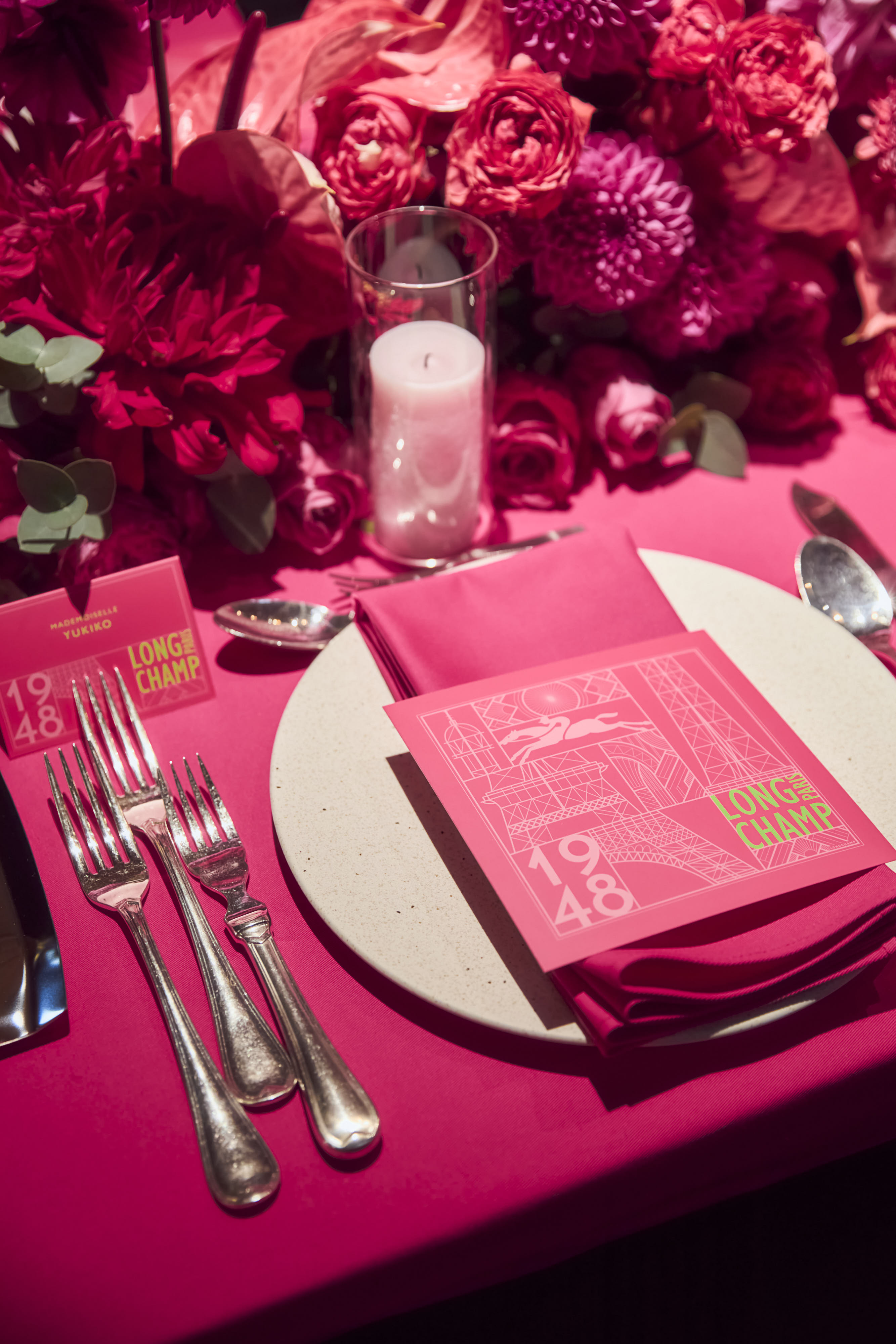 At TRUNK(HOUSE) in Tokyo’s charming Kagurazaka district, Longchamp hosted an intimate dinner event to unveil its THINK PINK! Spring 2025 collection. The setting felt like Paris wrapped in a rosy filter, where shades of pink illuminated every corner of the venue.