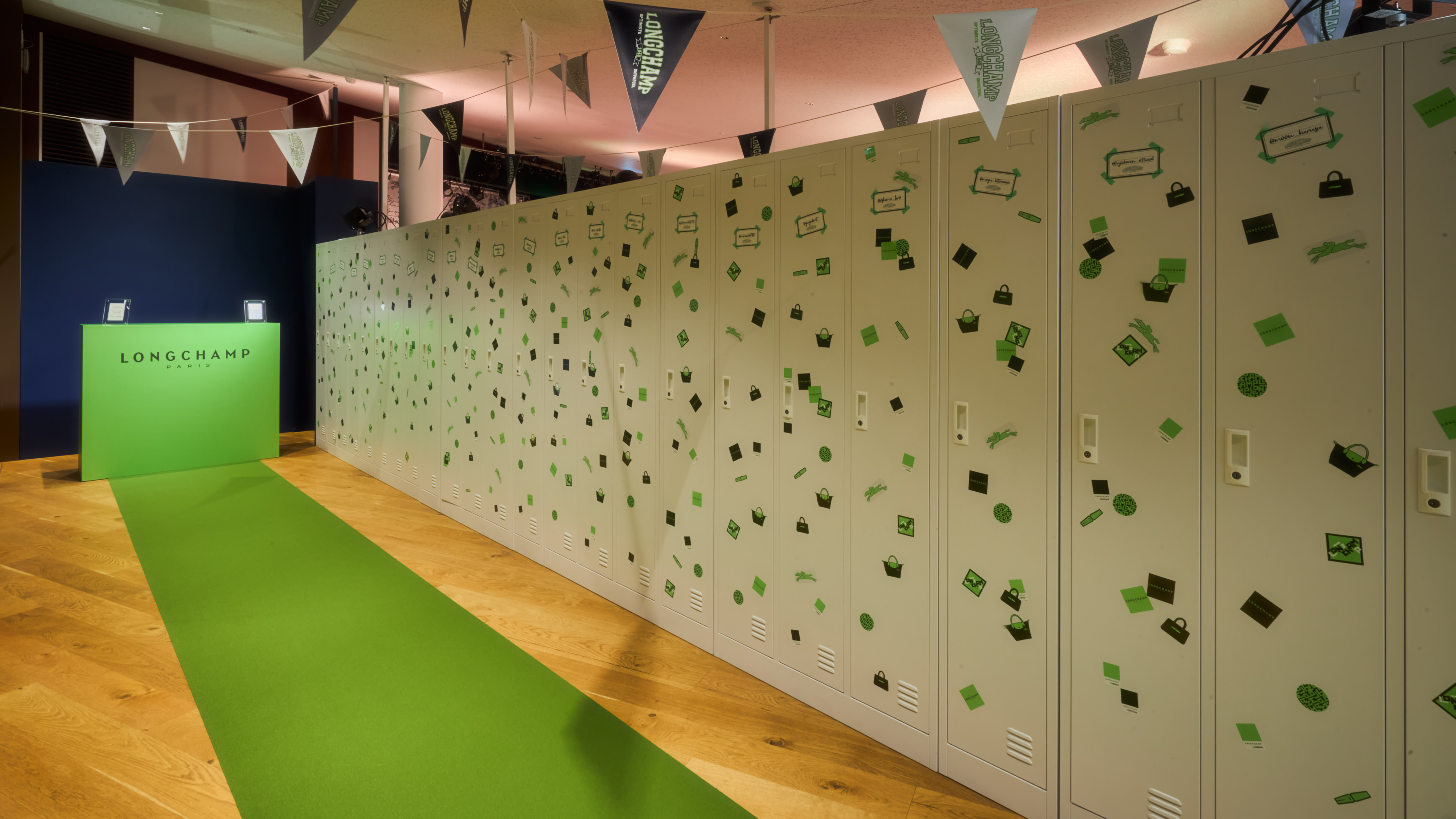 The immersive venue, with fluttering campus flags and whimsical school motifs, offered visitors a moment to relive their student days, all while showcasing the newest Longchamp bags in a youthful and energetic setting.