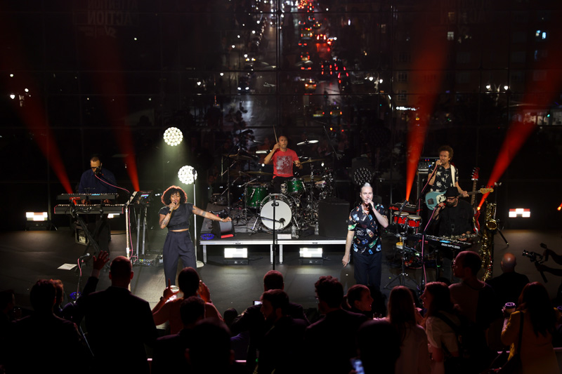 Following the stage presentation, attendees flowed into the Ertegun Atrium and Appel Room for cocktails, music from DJ L3NI, a movie-themed photo booth activation, and a surprise performance from Fitz and the Tantrums!