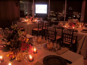 The event began with a stunning cocktail reception in the Rose Hall Atrium. The cocktail reception featured projections of image campaigns, elegantly lit collections of African art, floral designs using all native African flowers and plants featuring King Proteas, and a soundtrack of African music. Great Performances handled the catering and featured a custom "Triple Drug Cocktail" utilizing sponsored Belvedere vodka.Following the cocktail reception, 380 guests entered the spectacular Allen Room for an elegant, seated dinner. The tables for this dinner were designed by Helena Lehane and featured smoked glassware, black silverware, textured African-style linens and hurricane candle groupings.